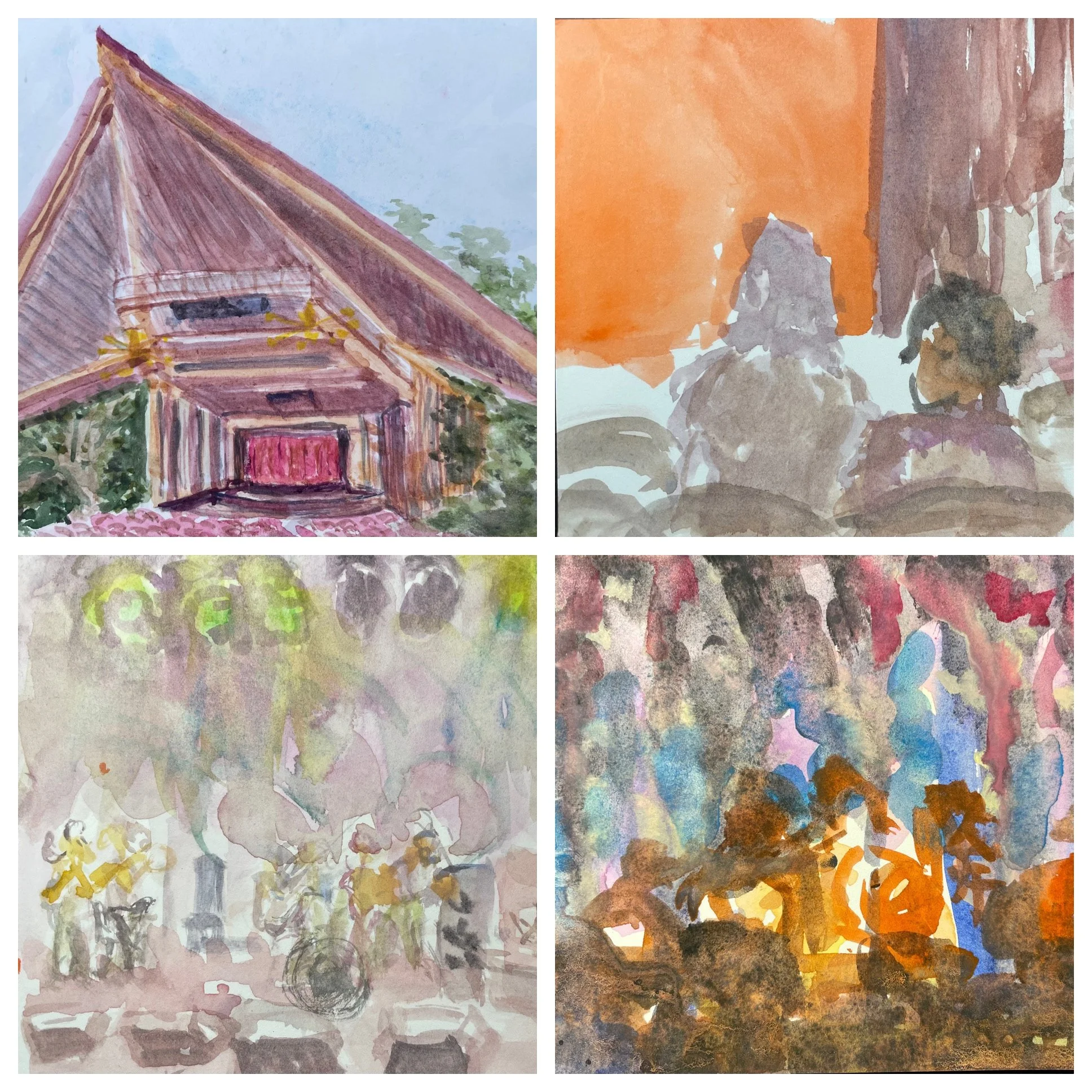 I am currently creating a series starring Miller Outdoor Theatre — one of my all-time favorite places in Houston. Virtually all of the images have been done as plein air works. I am working both in watercolor and also drawing on my iPad in the digital program, Procreate.